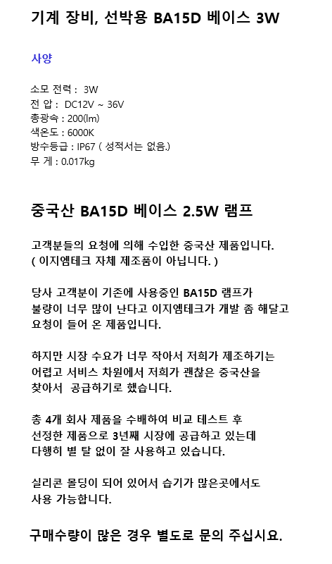 [경관조명] BA15D베이스 3W 램프