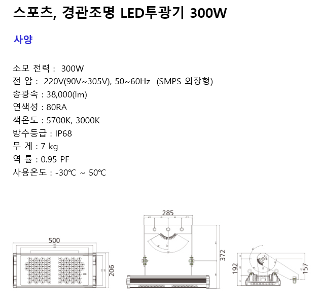 [스포츠조명] LED투광기 300W 스포츠조명