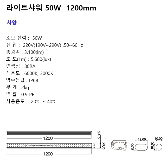 [경관조명] LED라인투광기 220V,50W,1200MM