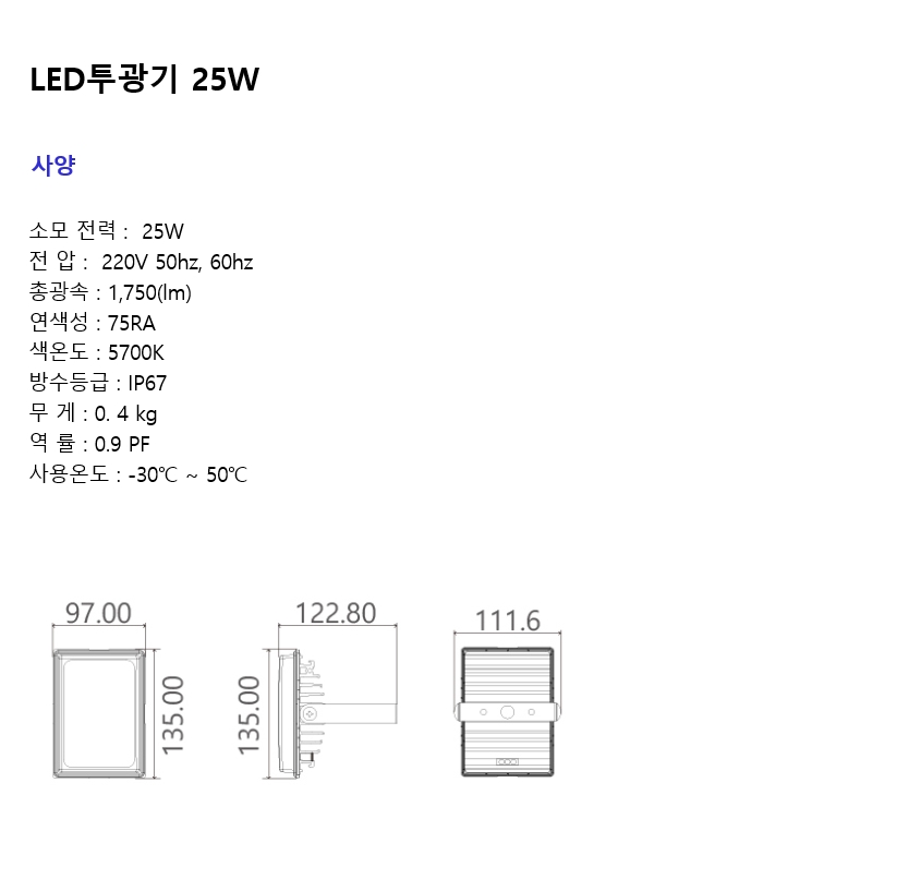 [농업/어업/축산 조명] LED투광기 25W